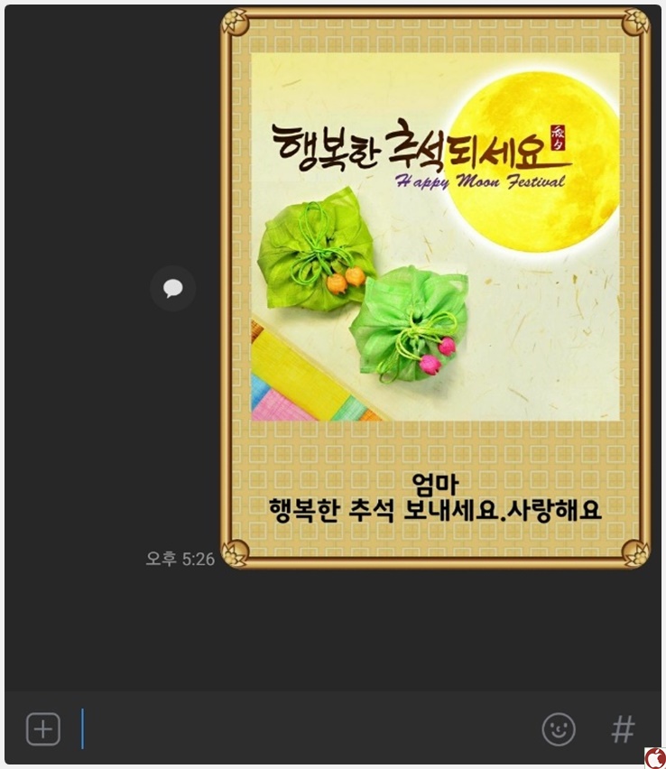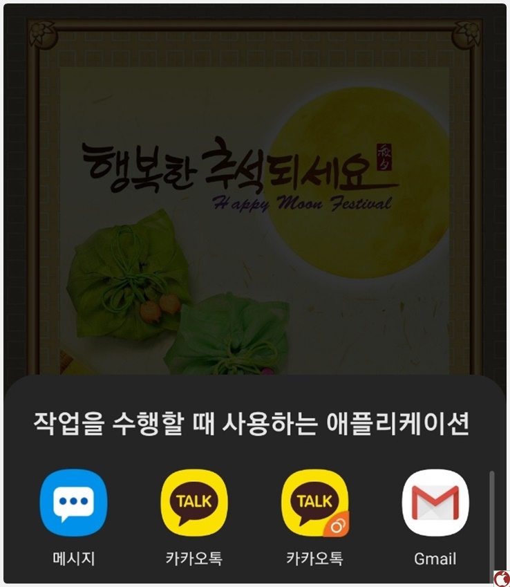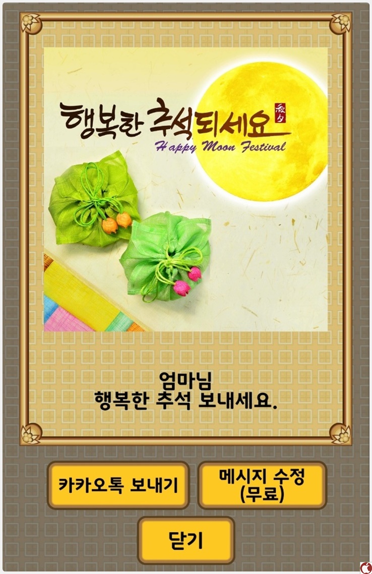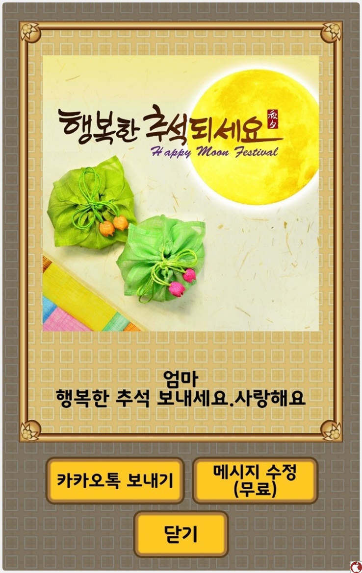 그러면 이렇게 바로 추석 인사말 카드를 보낼 수 있습니다.
