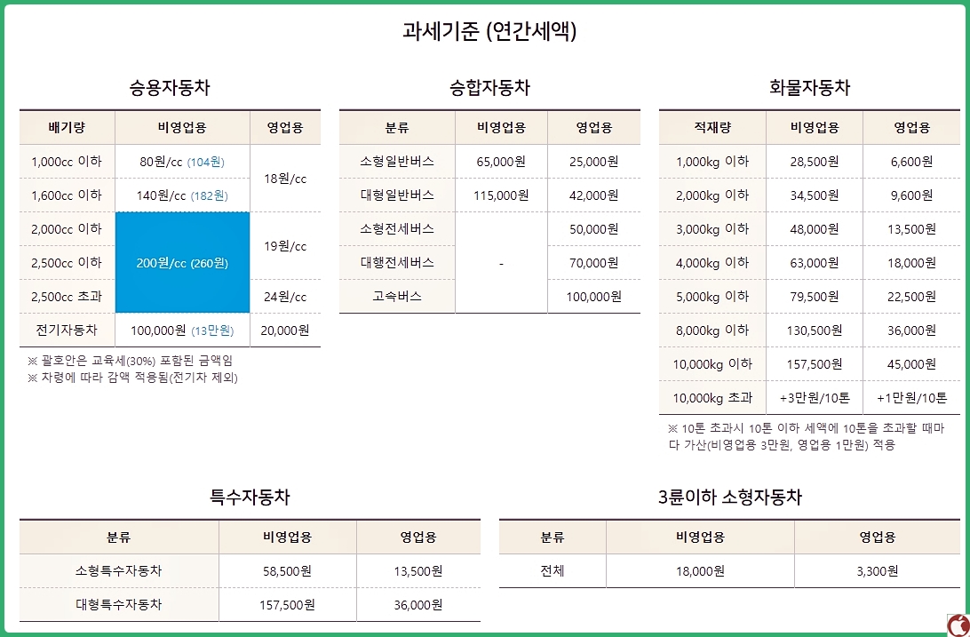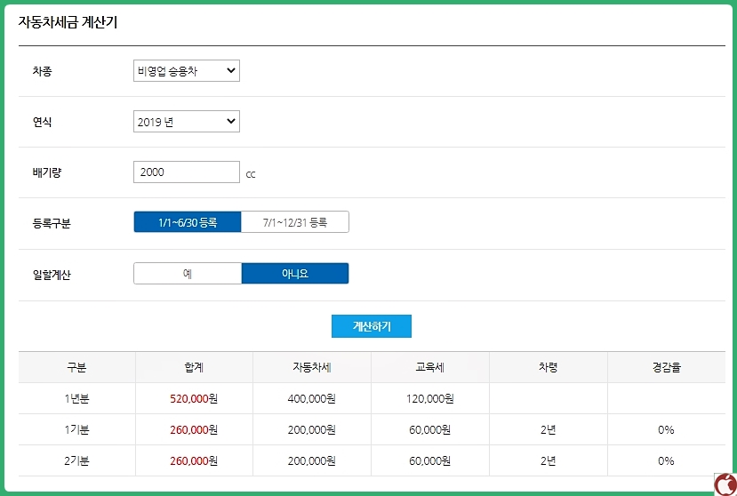 하지만 자동차세는 차의 구매가격과는 관계 없이 차종과 용도 그리고 연식과 배기량에 따라 조금씩 달라지는데요. 내 차아가 어디에 해당하는지만 입력하면 바로 계산된 금액을 알 수 있으니 편하게 계산 하고 싶었던 분들은 이용해주세요.